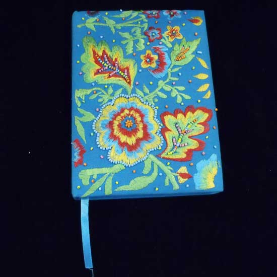 The notebook boasts a fabric cover decorated with beautiful embroidery. It contains blank recycled paper for convenient note-taking. This notebook makes a great choice for school, office and personal use.