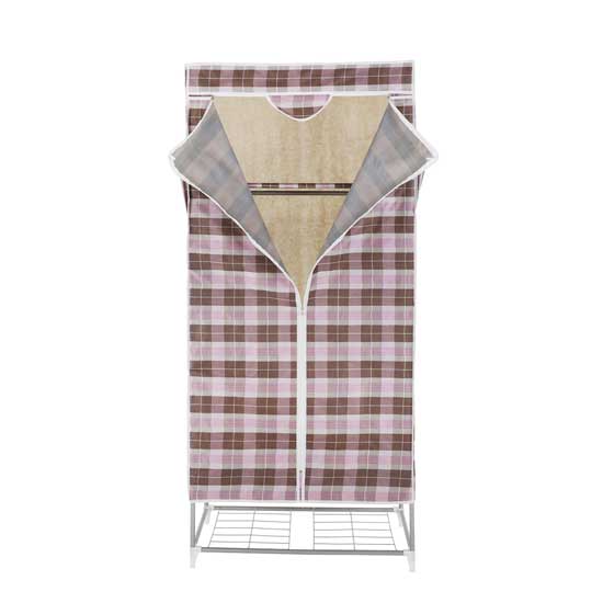 This stylish fabric wardrobe is accented with multi-color checkerboard patterns on the exterior. The functional wardrobe is designed with a hanger bar and a shoe caddy for easy organization of your garment and footwear. The fabric wardrobe can be easily set up.