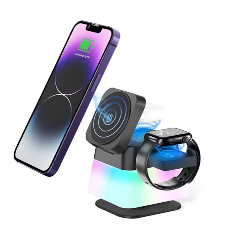 Factory Qi Charging Station Stand RGB Colorful Lamp Cube 3-1 Multi-functiion Magnetic Wireless Charger 2024