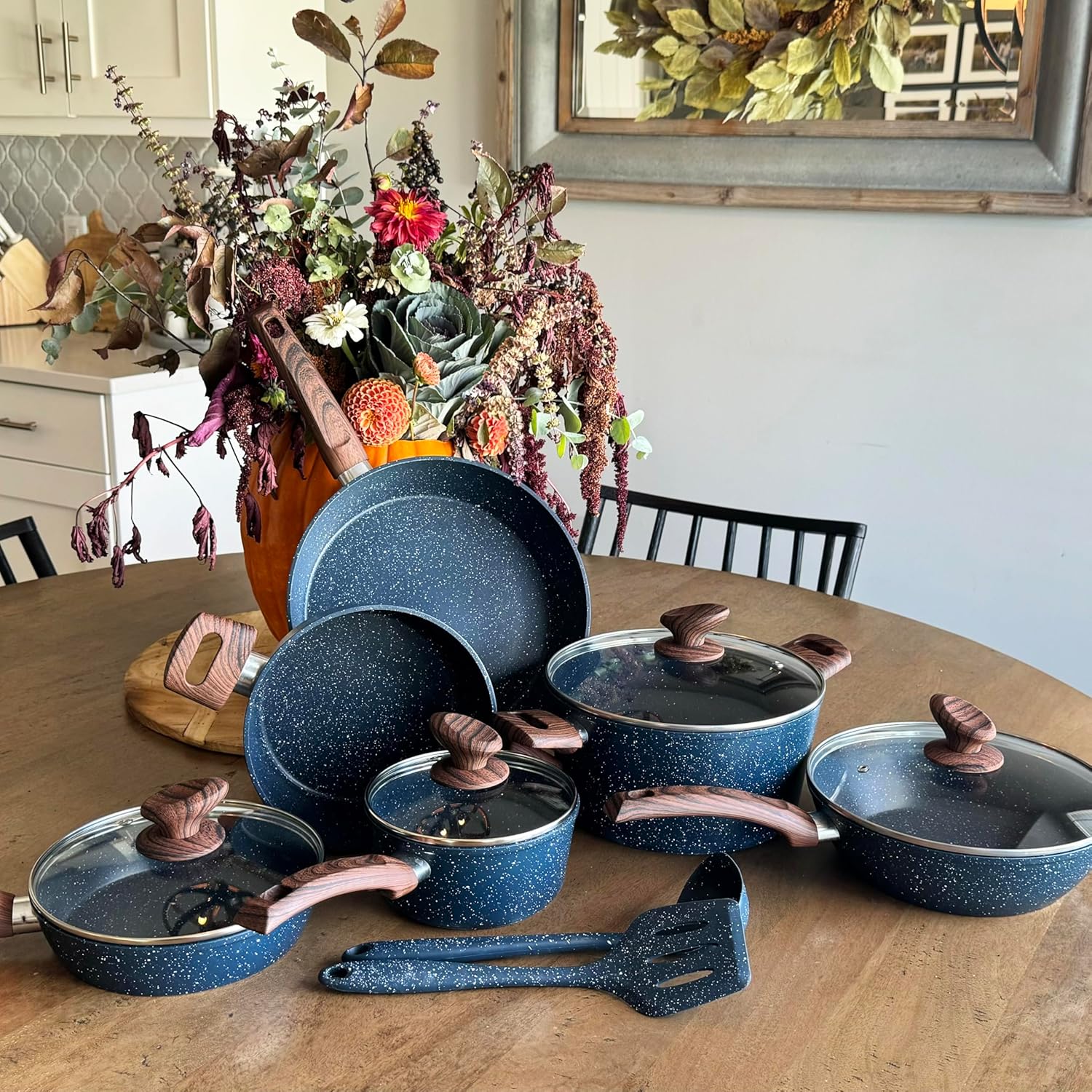Factory Wholesale Customize 12 Pcs Forged Aluminum Non Stick Cookware Set Induction Bottom Pans Pots Nonstick Ceramic Coating Cookware for Kitchen Cooking