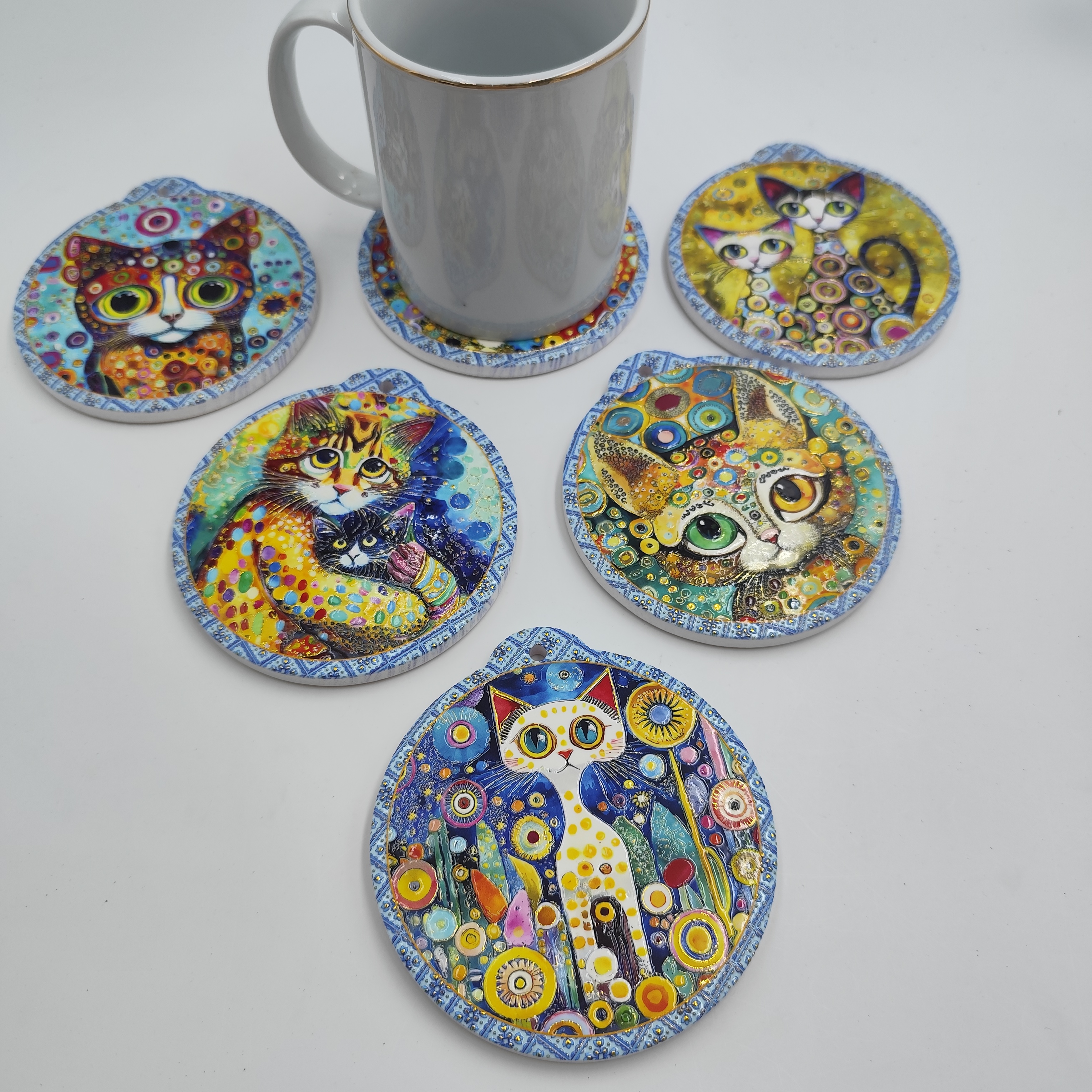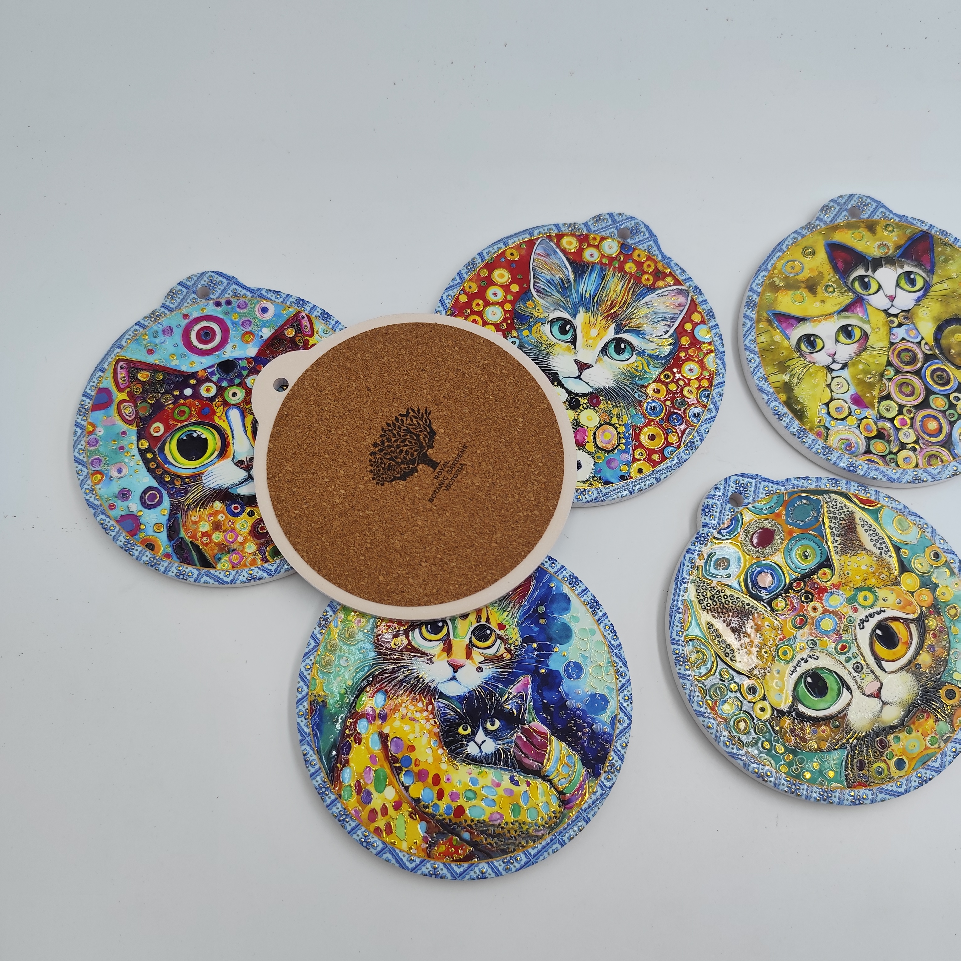 Factory direct Sublimation Persian cat picture Ceramic Coasters Sublimation Water Absorbent Ceramic Coaster With Cork Back