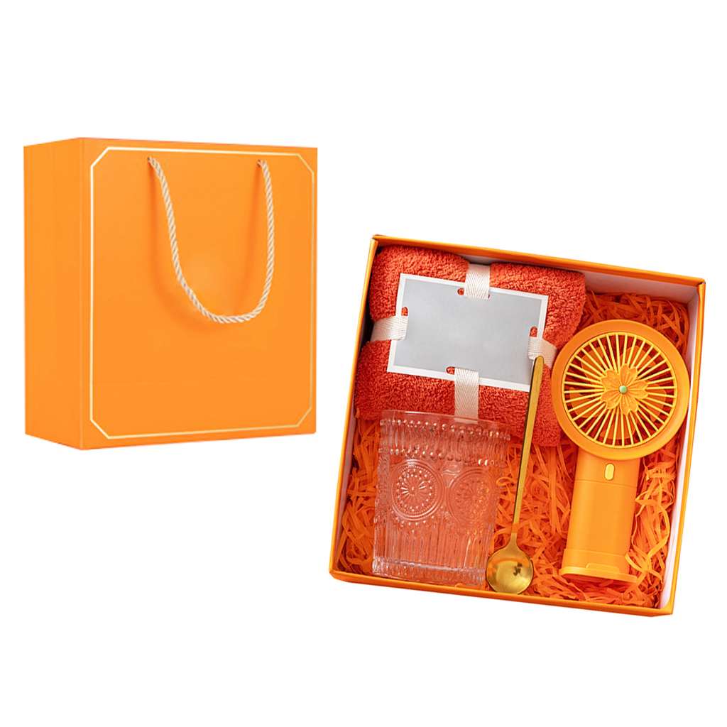 Fan, Glass Water Cup, Stirring Spoon & Towel Box Set includes the following features :