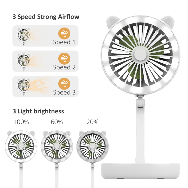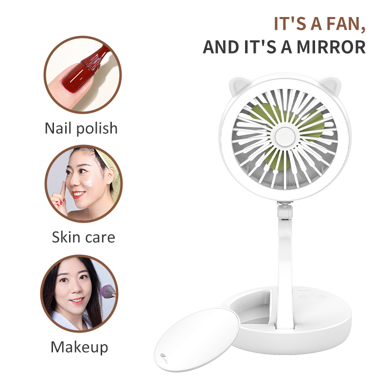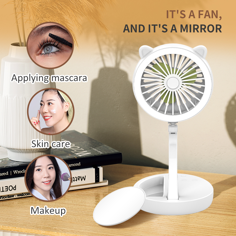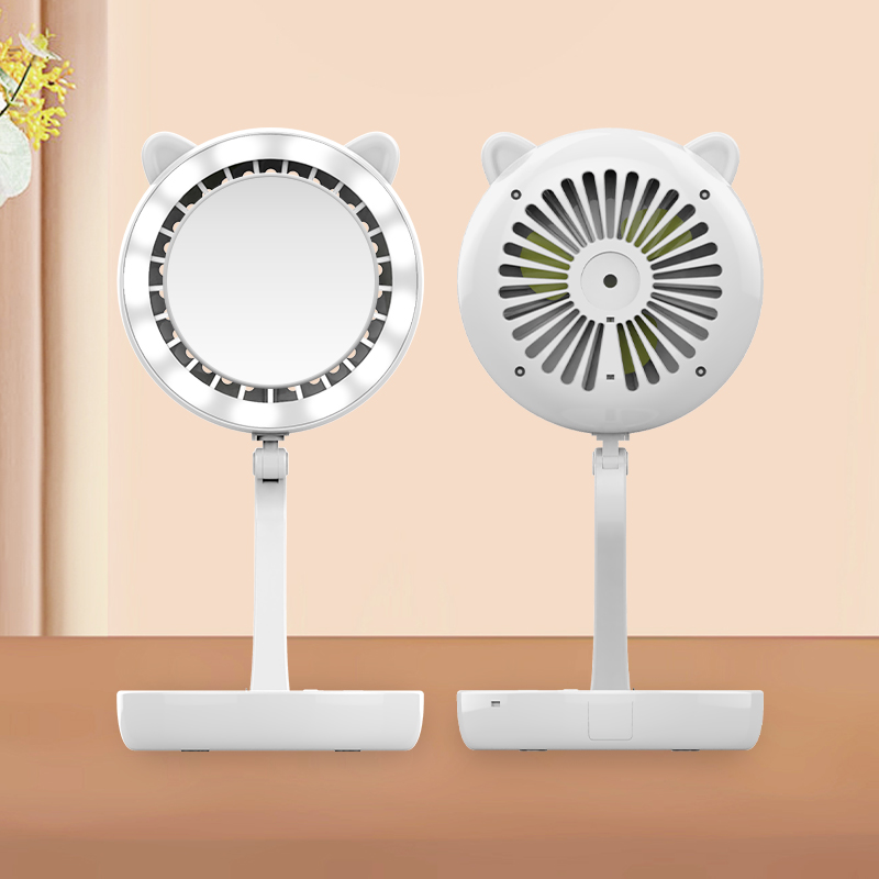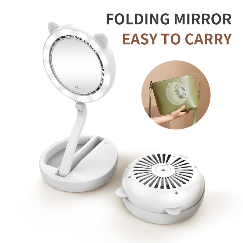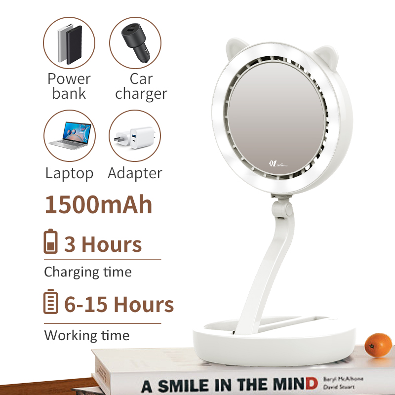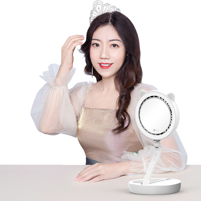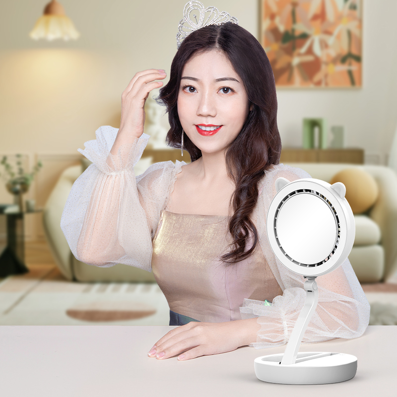 All-in-One Design: Combines makeup mirror, cooling fan, and LED lighting to meet your grooming and cooling needs simultaneously.