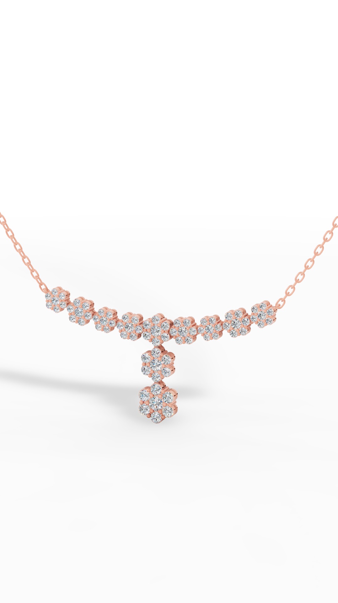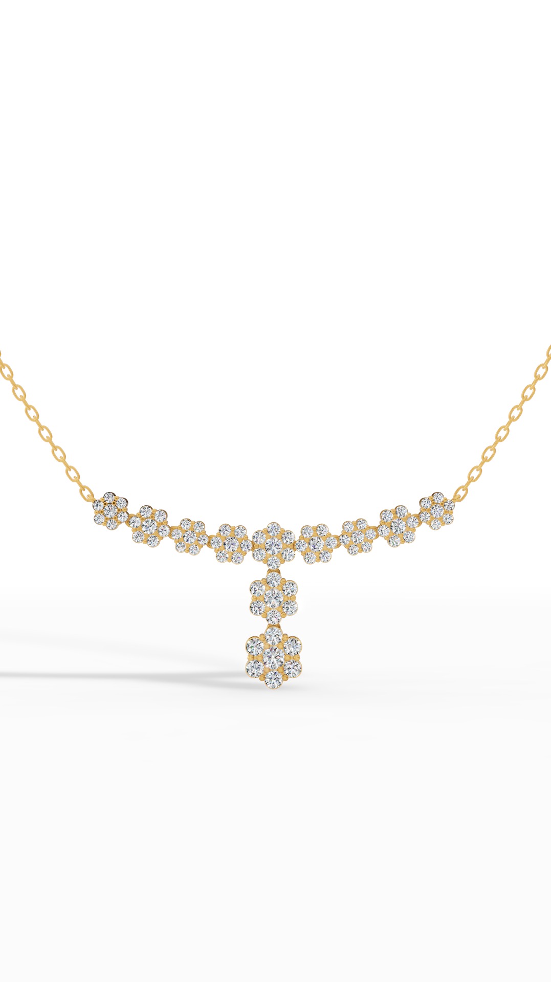 Eye-catching necklace adorned with a sparkling cluster of round cut lab-grown diamonds, offering radiant brilliance and timeless elegance for any occasion.