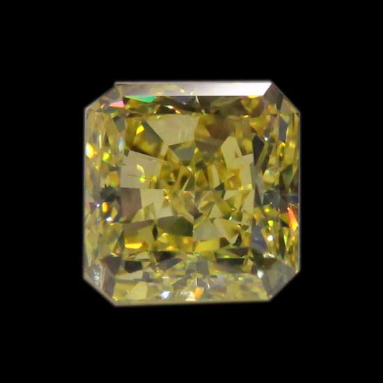 Featured here is a colored diamond in fancy intense yellow. It is finely cut with exquisite craftsmanship and attention to details. This dazzling fancy diamond makes a great collectible of jewelry.