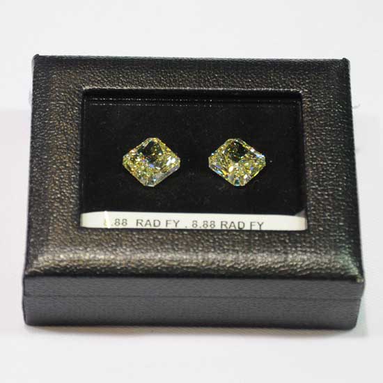 Featured here is a pair of fancy diamonds in radiant cuts. The numerous facets bring irresistible sparkles. These fancy diamonds are ideal for any high-end earring design.