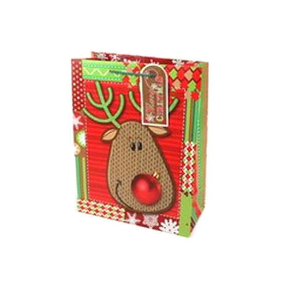 This is a gift bag coming with a reindeer image for an adorable look. It is made from premium quality fancy paper for reliable performance. The lanyards are durably made to lift heavy objects.