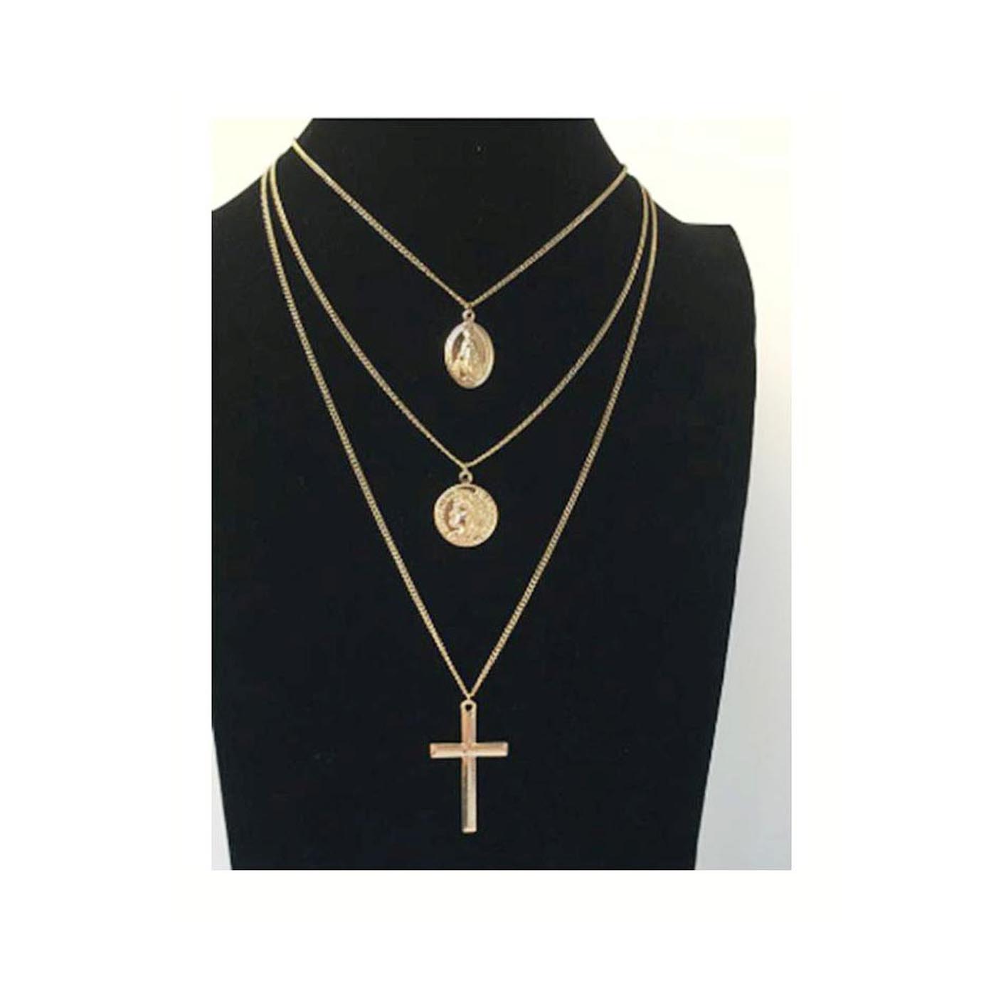 As shown is an elegant trendy necklace each highlighted by charm cross and circle alloy pendants and golden plated chains.