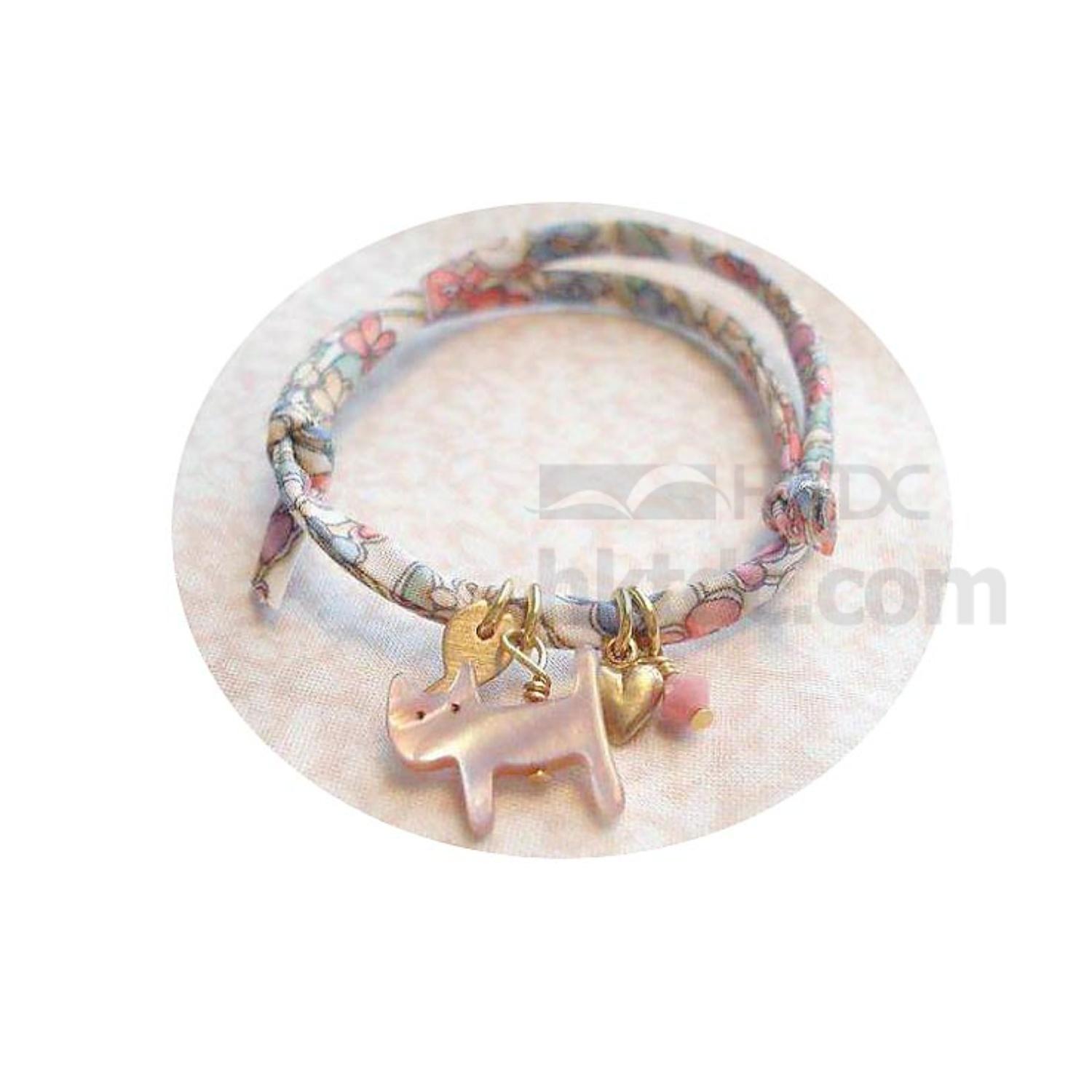 As shown is a high-fashion cat and golden heart charm bracelet.
