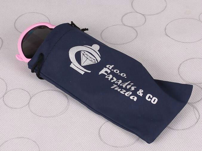 This is an oblong eyewear pouch that holds one pair of sunglasses. The all-dark bag highlights a contrasting logo in the middle for corporate promotional purposes. Made out of cotton fabric, this pouch will not scratch those delicate lenses and it is very easy to clean.