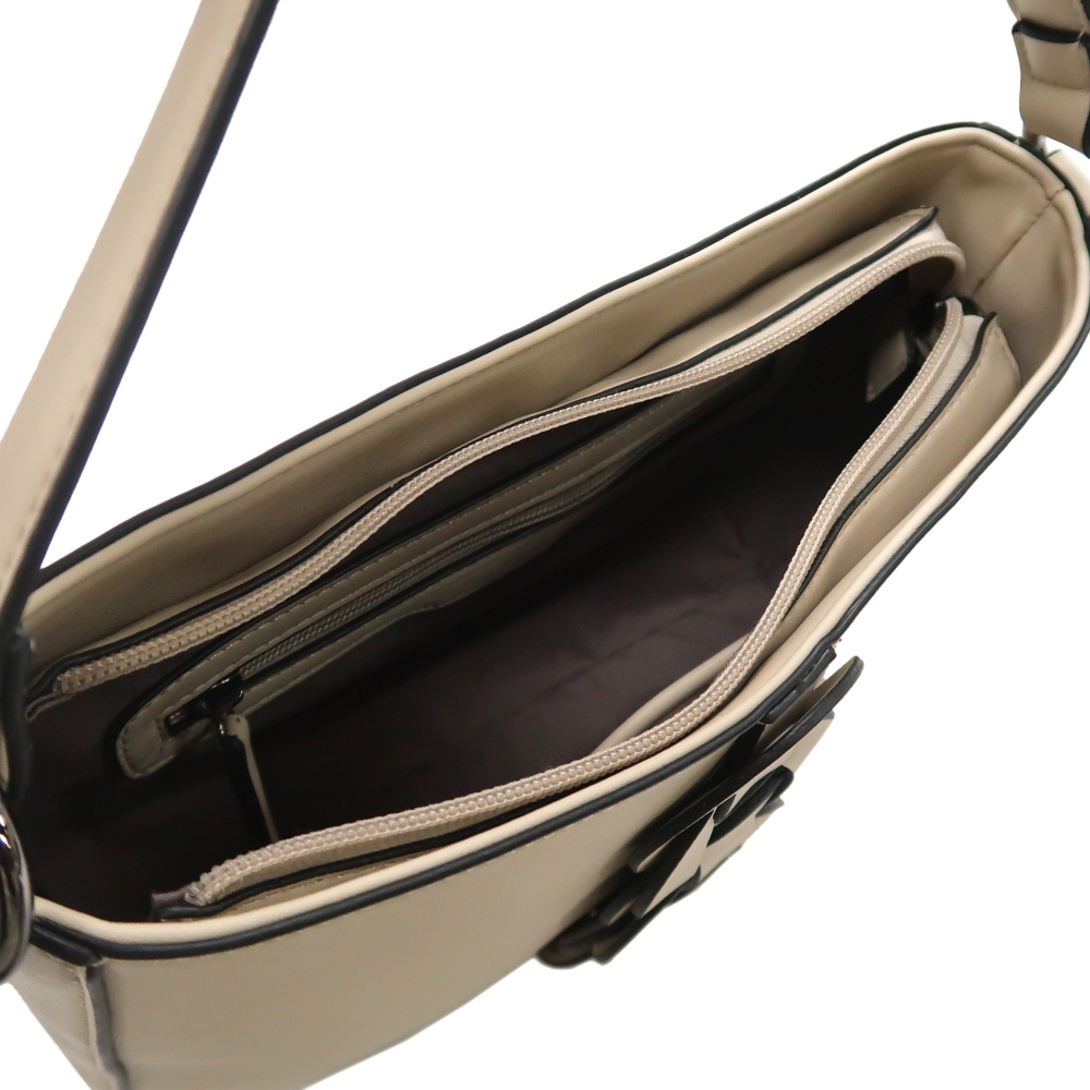 Shoulder bag is accented with signature design on front Panel and opens to a small interior that's sized for the essentials. Carry it by the short handle or attach the longer strap to wear it cross-body.