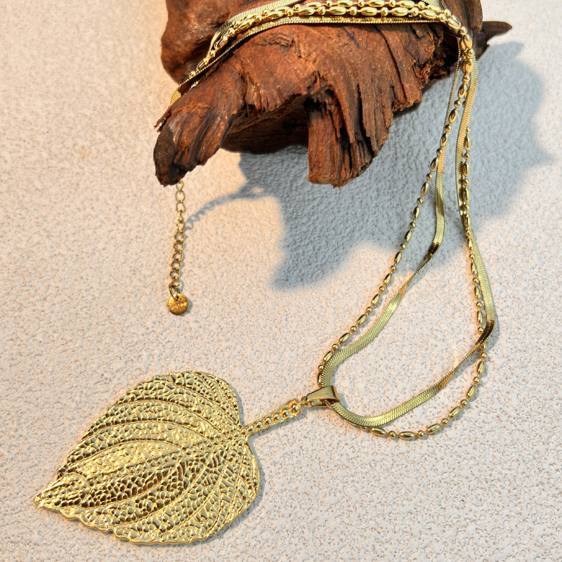 Fashion Jewelry Stainless Steel Necklace with Leaf Pendant