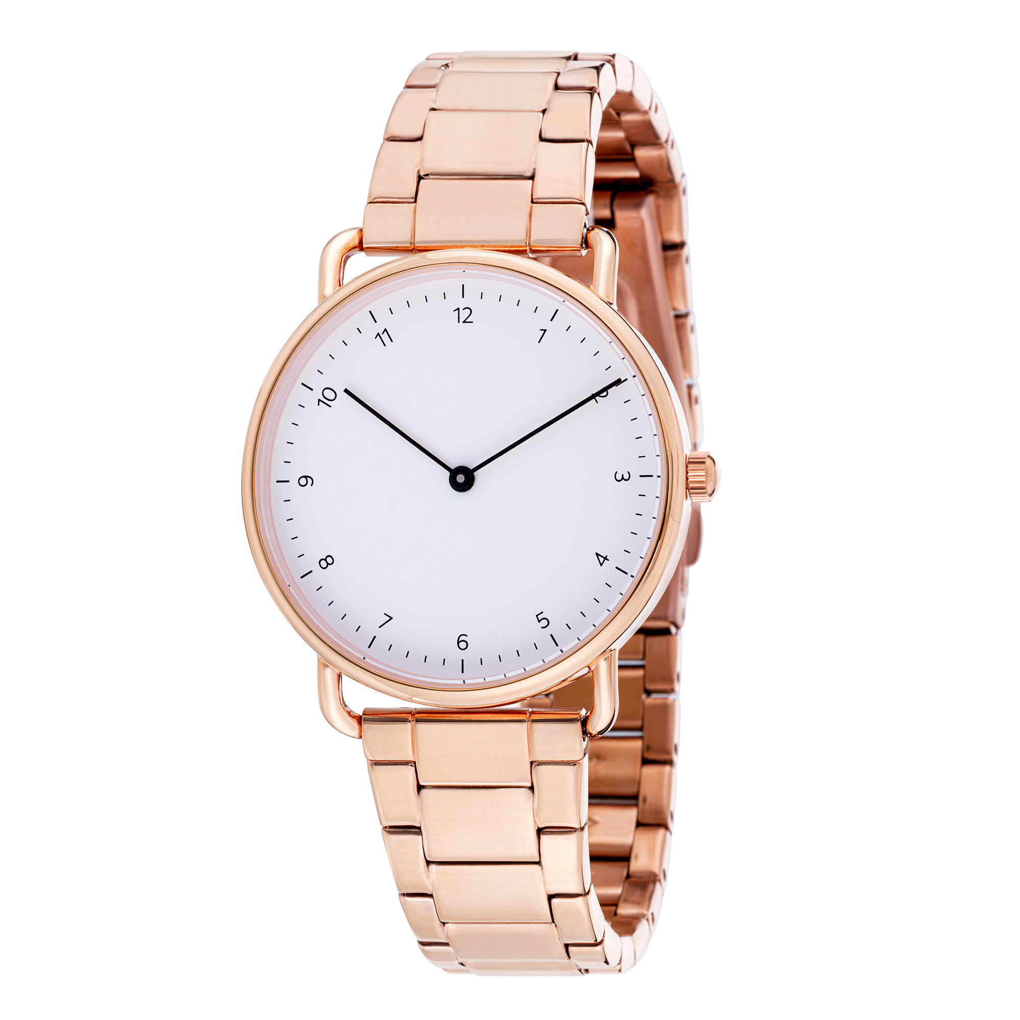 Stainless Steel Case • IP Rose plating • 2 Hands Japan Movement • Dial with printed index • Stainless steel Cap-folded Stainless steel bracelet • 5 ATM • Case Size: 36mm • Metal band available for interchangeable • Rose gold plating version •