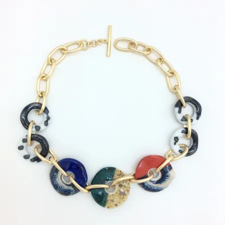 Fashion Lady Advanced Fashion Jewelry Double Layerpendant Necklace Mixed Color Ceramic Beads Necklace