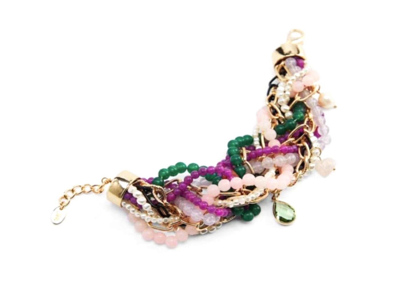 As shown is an elegant trendy mixed rows colorful plastic beads bracelet.