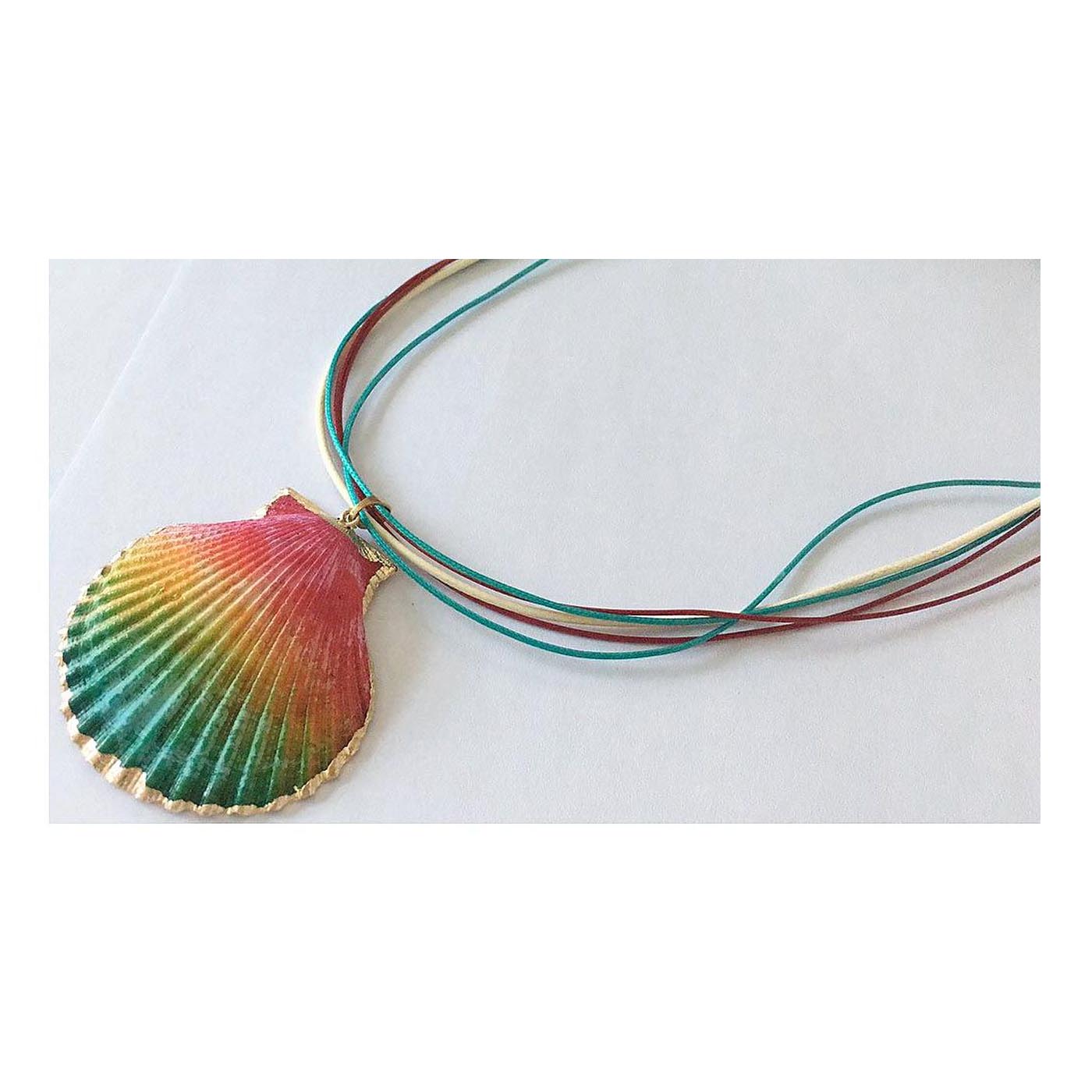 As shown is an elegant trendy shell styles necklace with multiple strands each highlighted by metallic accessories.