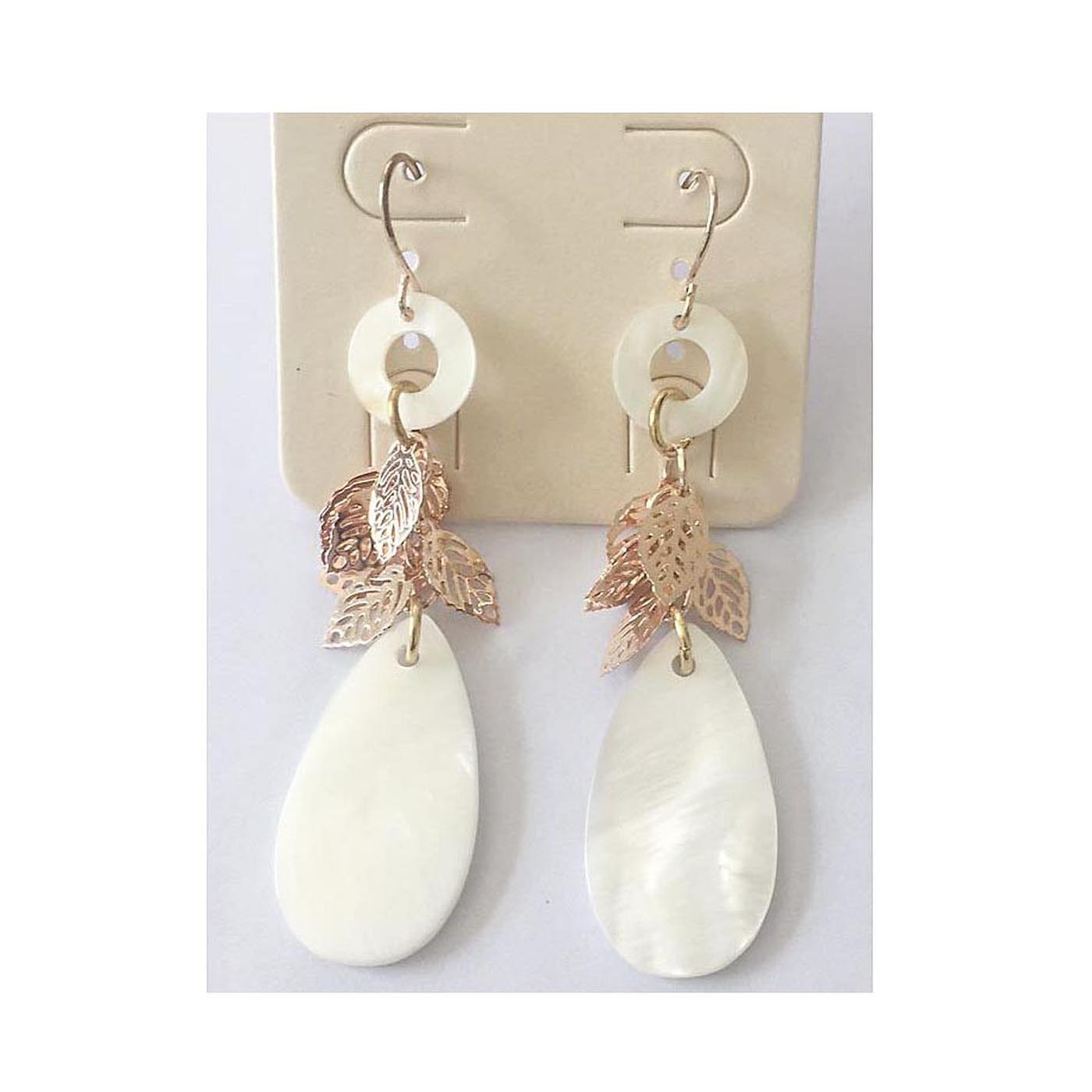 This is a pair of high fashion statement earring with drops made in a variety of materials including shell, stainless steel and metal alloy.