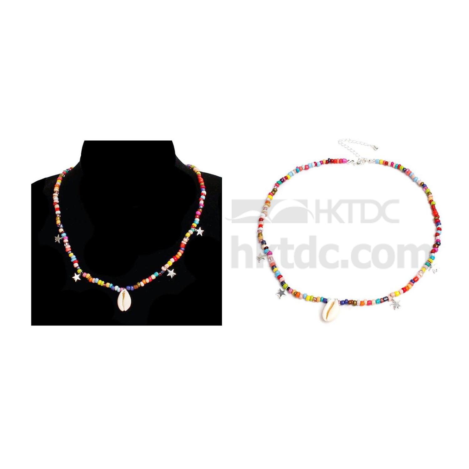 As shown is an elegant trendy necklace each highlighted by natural shell and plastic beads accessories.
