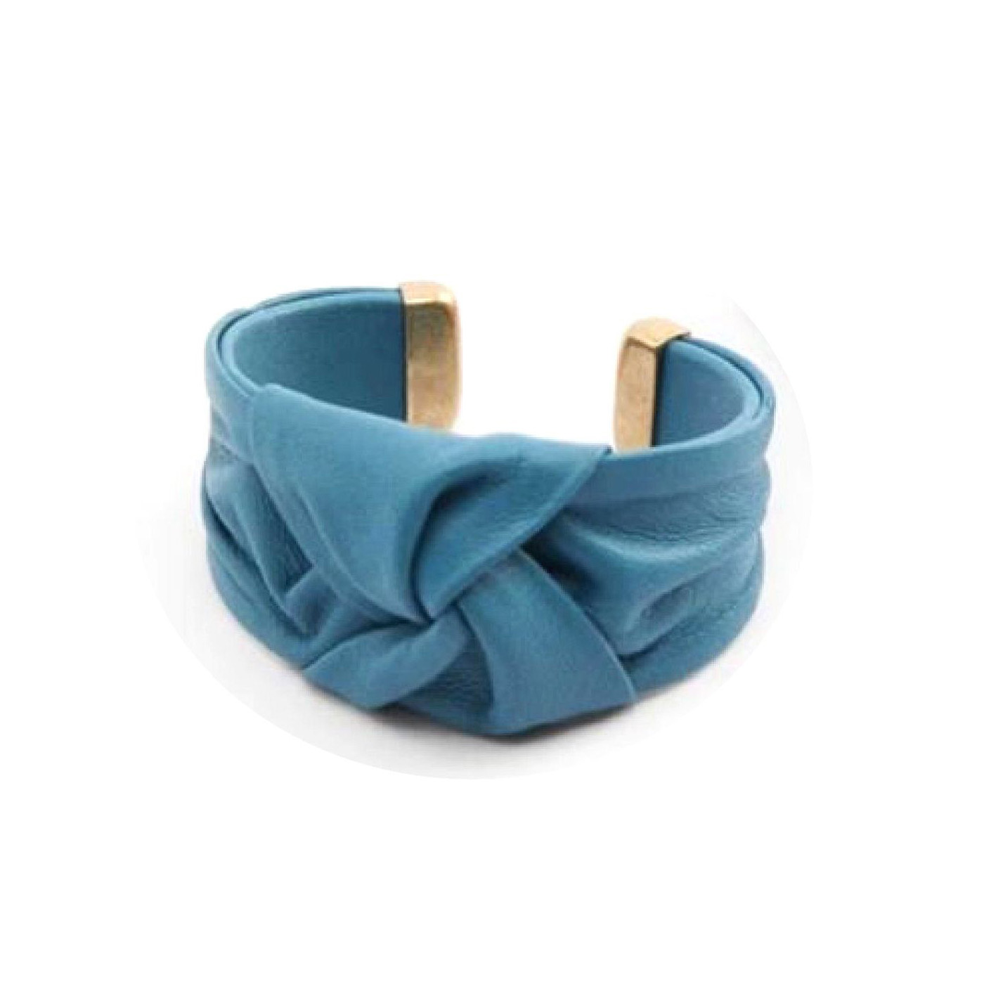 As shown is a high-fashion PU leather golden plated bangle with alloy materials.