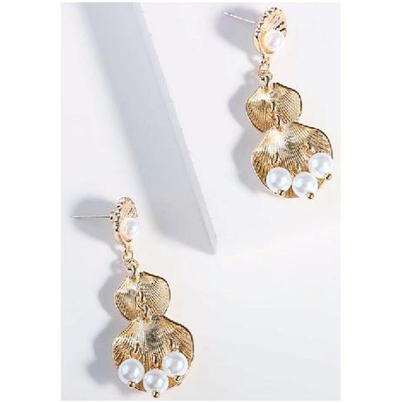 As shown is a high-fashion golden plated shell style and plastic beads charm drop earring.