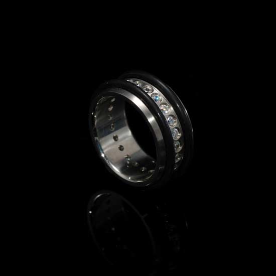 The beauty of this ring lies in the sparkling stones set along the band. Two black lines are added to give this ring a fashionable look. Refresh your casual look with this exquisite ring.