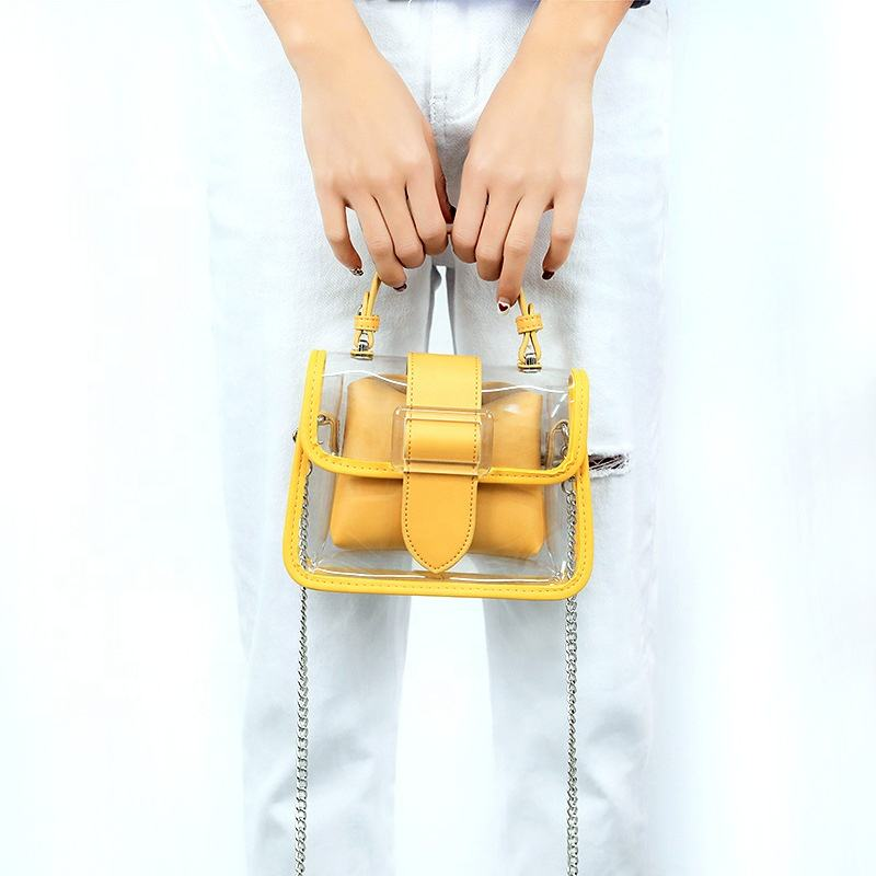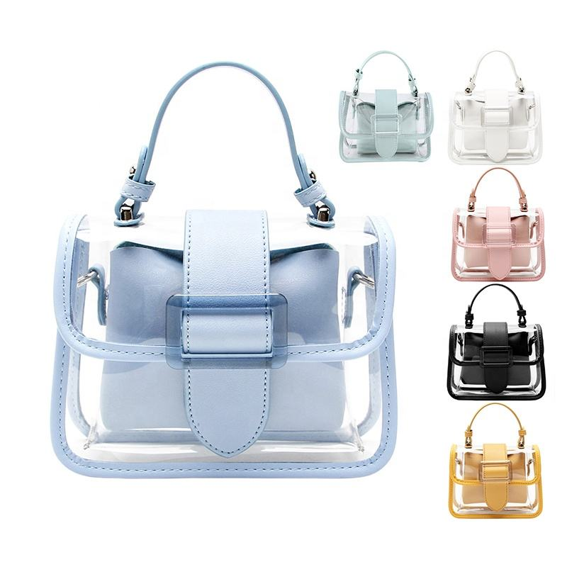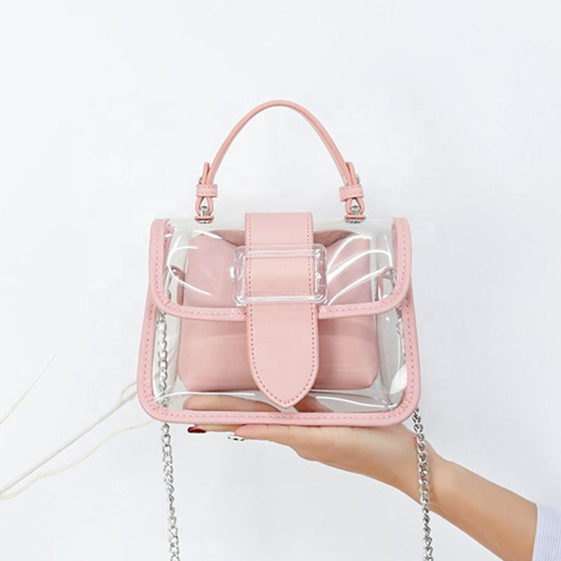 Fashion Waterproof Transparent Clear PVC Leather Jelly Chains Messenger Crossbody Tote Handbag Purse Bag Set for Girl
