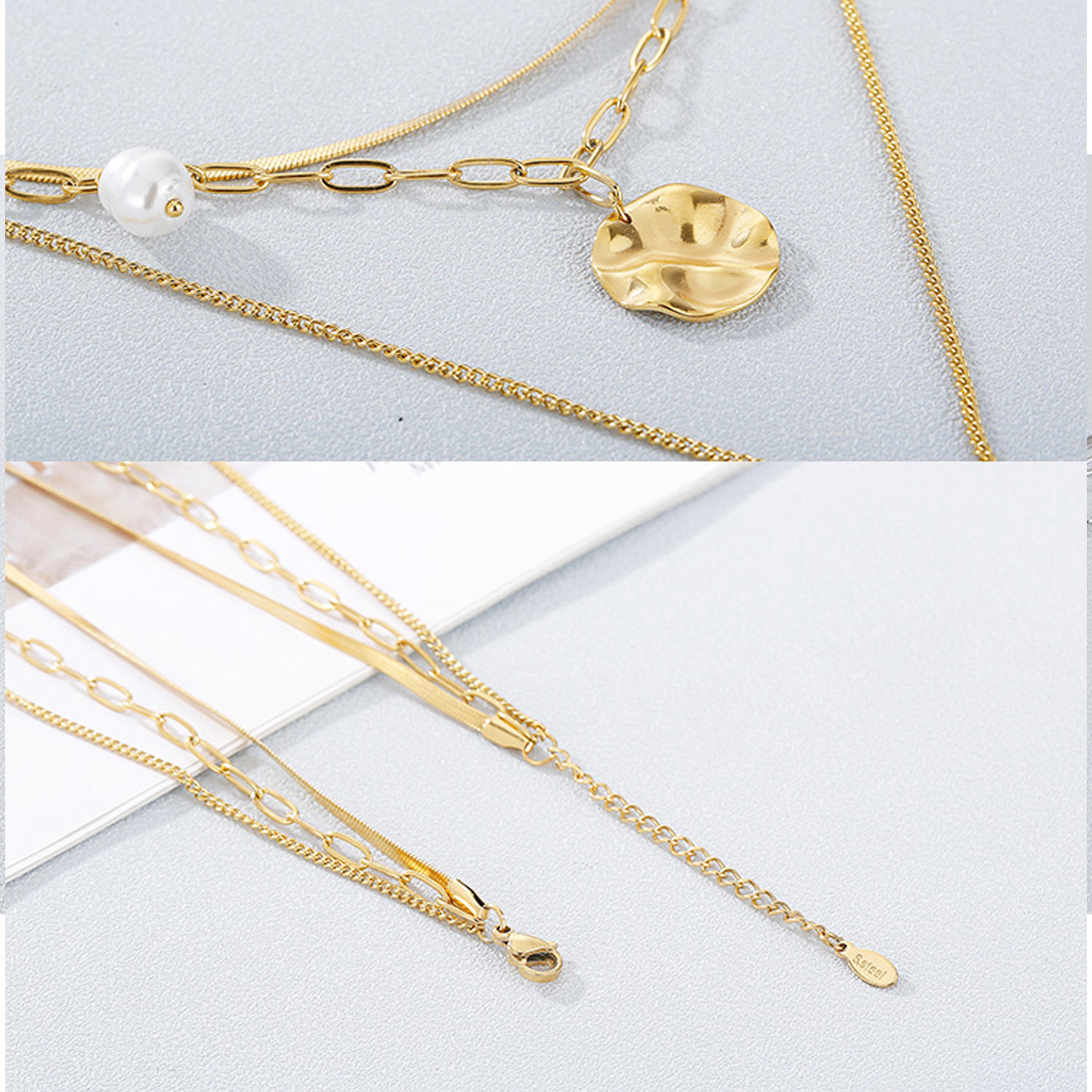 Fashion Woman Three Chains Shell Necklace Earrings Stainless Steel Jewelry Sets