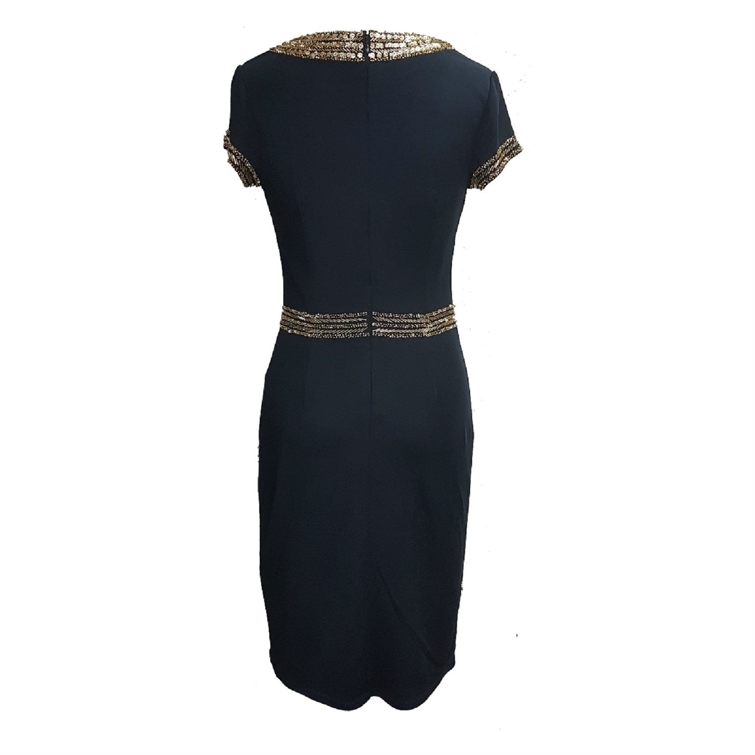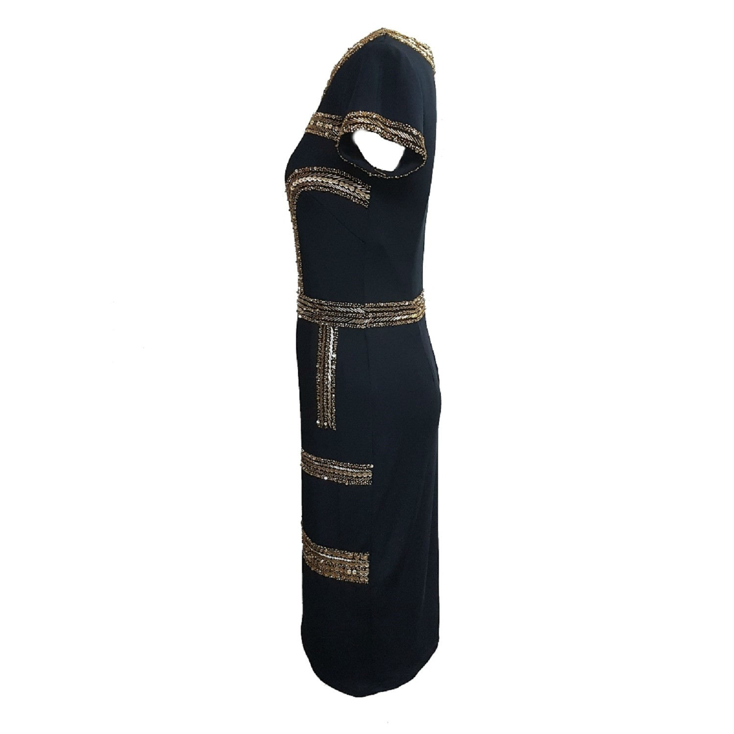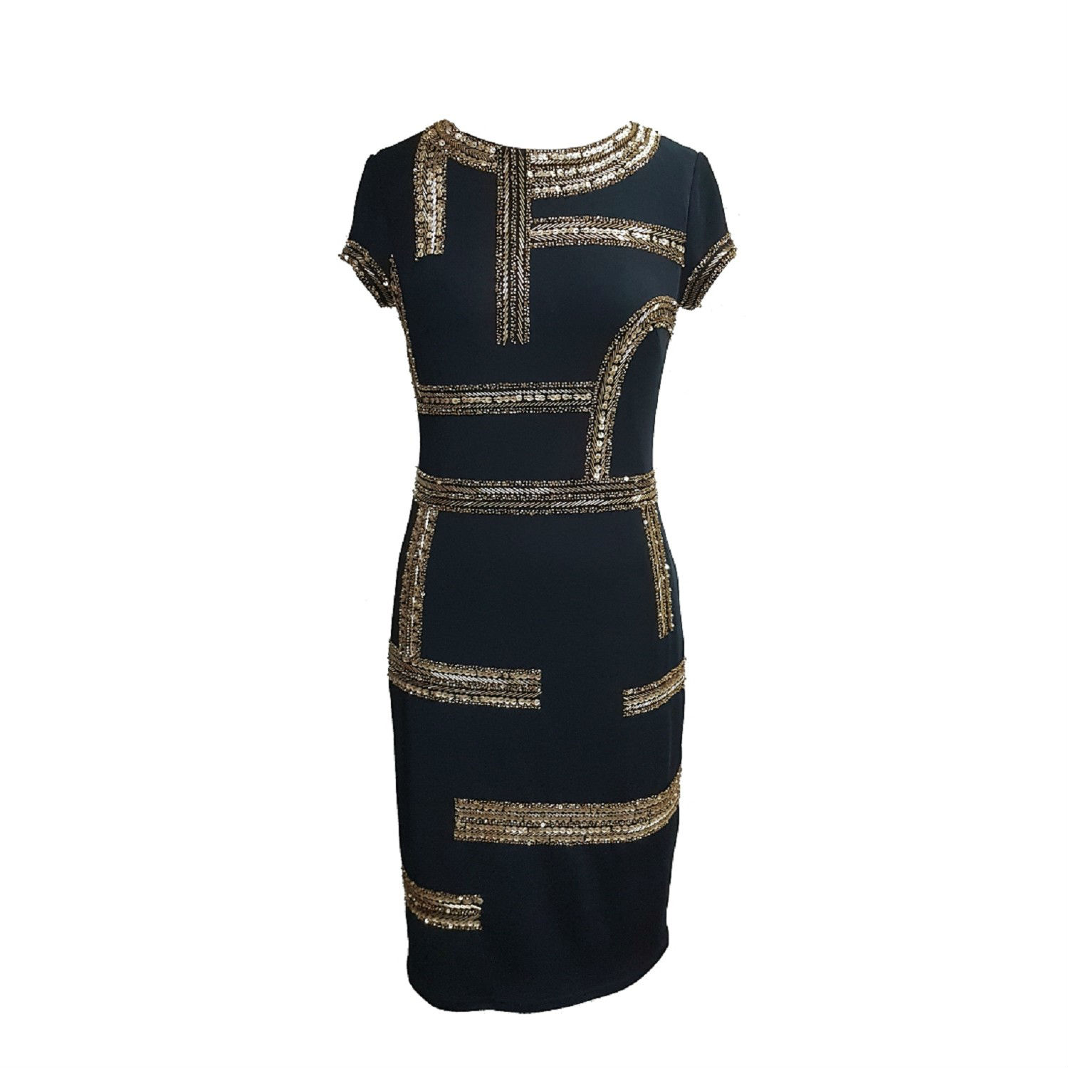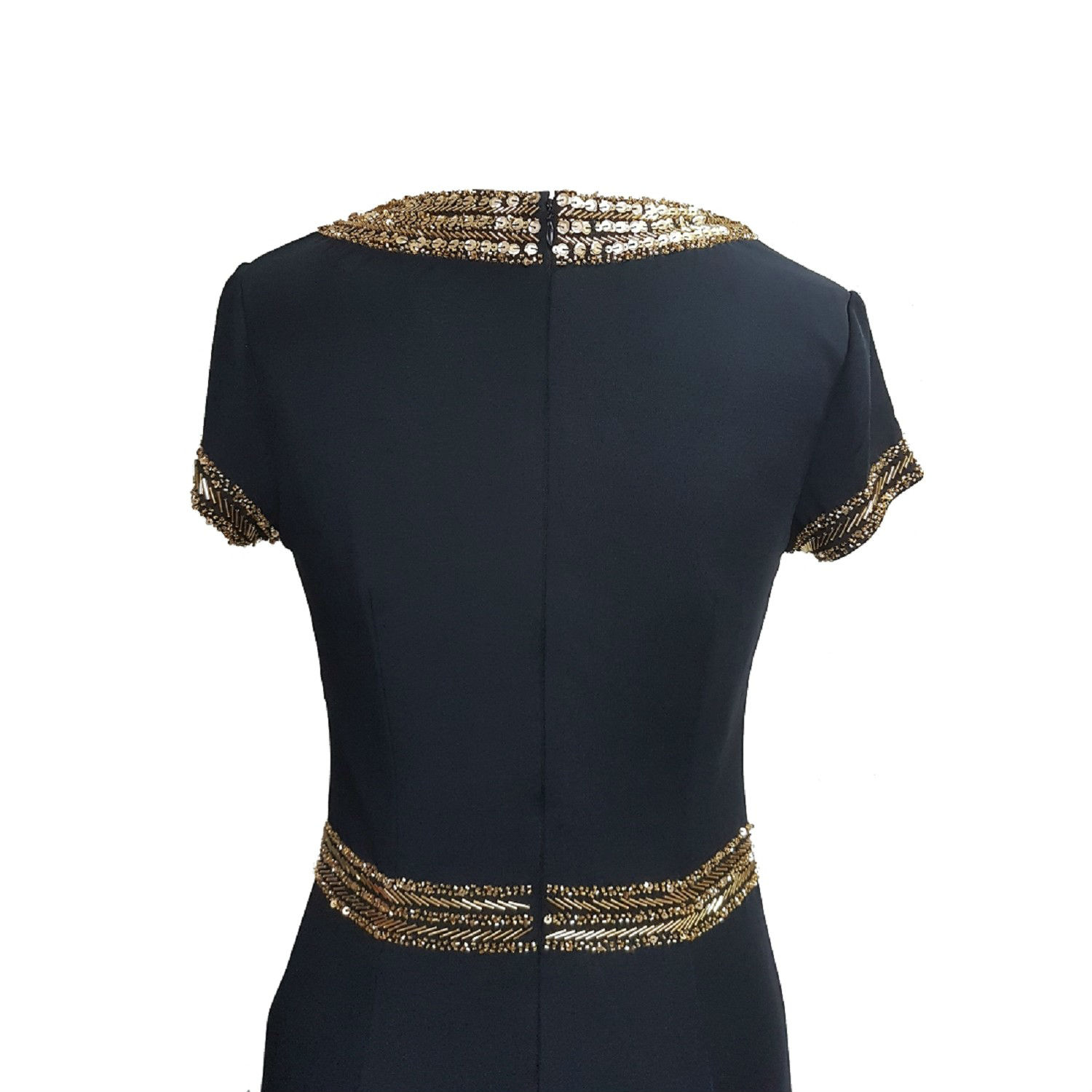 Fashionable Beaded Round-Neck Jersey Short Dress
