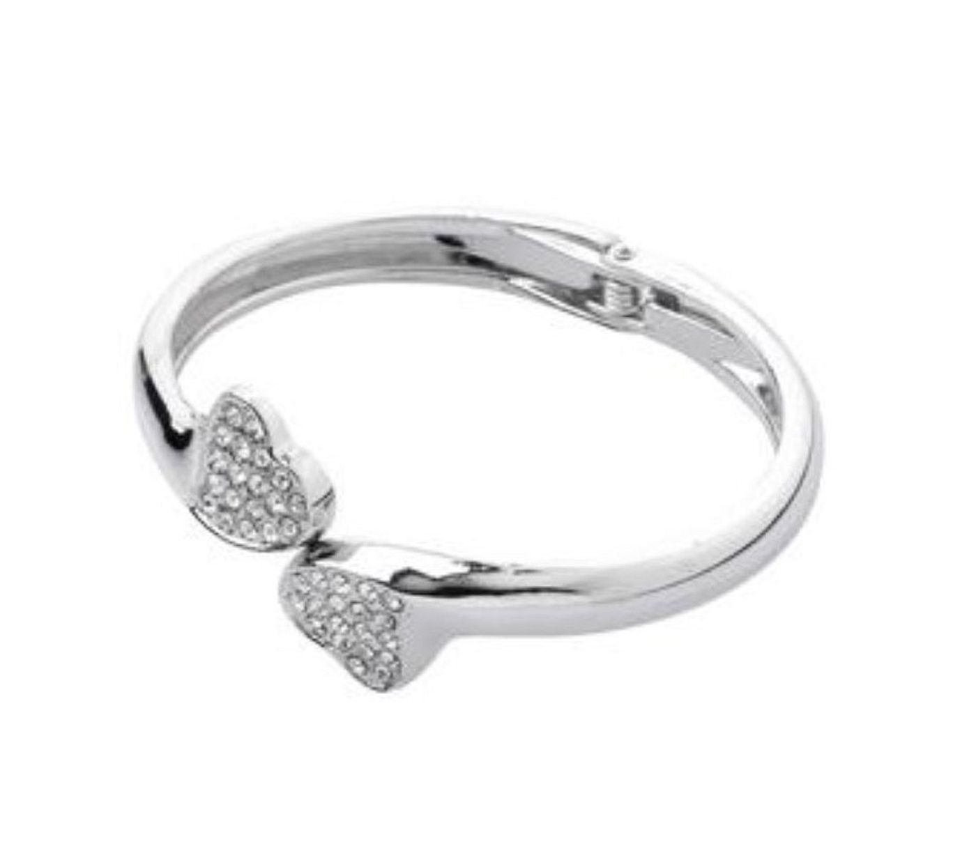 As shown is a high-fashion crystals silver plated bangle with alloy materials.