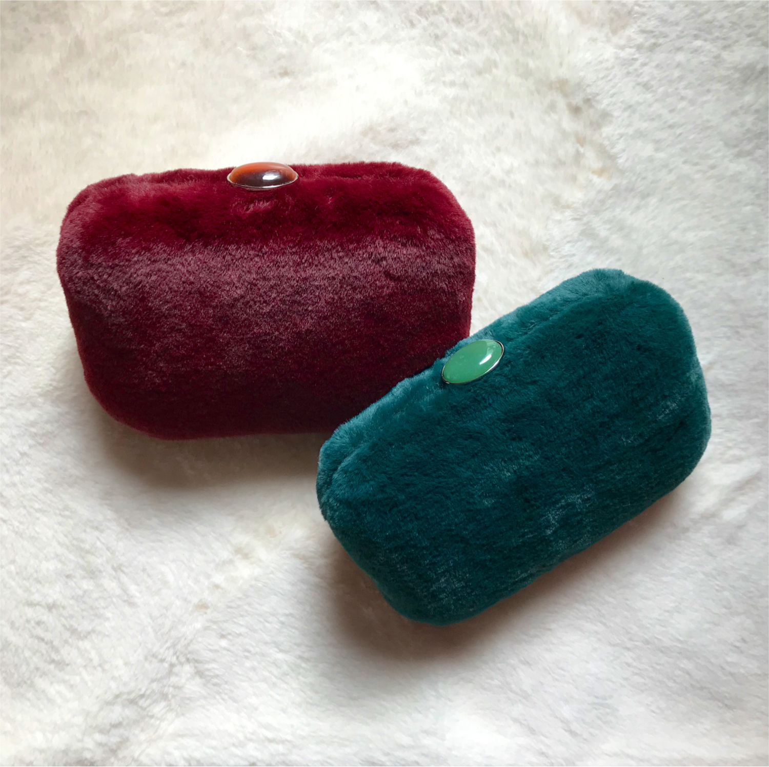 Faux Angora Fur Stainless Steel Clutch with Gem Stone Clasp