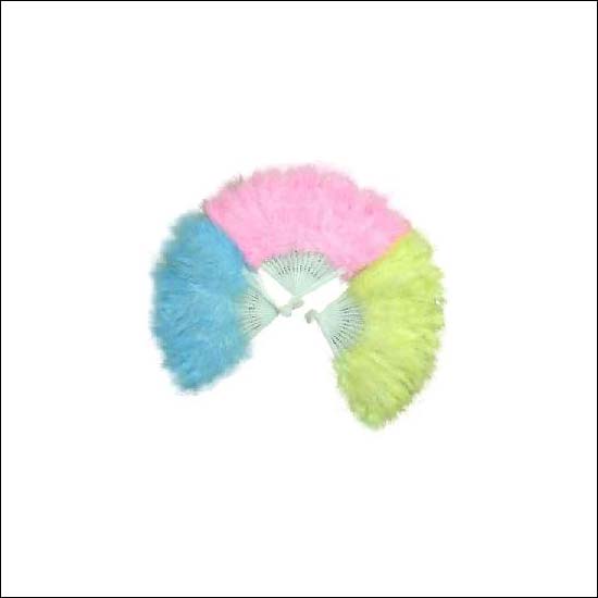 The feather fan comes in three colours, pink, light blue and yellow