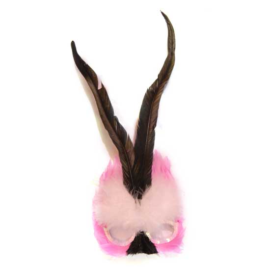 The party mask boasts 2 feather sprays with 2 holes for your eyes. It is well crafted with excellent quality. This feathery mask is the perfect disguise for masquerades.
