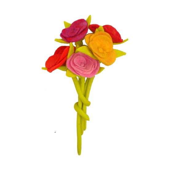 These are felt flowers twisted together forming a nice decoration. Each flower features a bendable stem for high modeling. With unlimited possible modeling, these felt flowers make great decoration items.