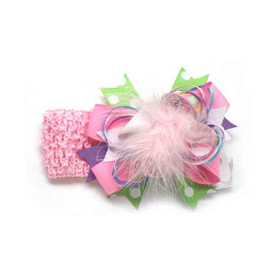 This is a headband made of soft felt. With a fancy design, this headband is decorated with bowties and feathers. This beautiful felt headband is great for accessorizing you look.