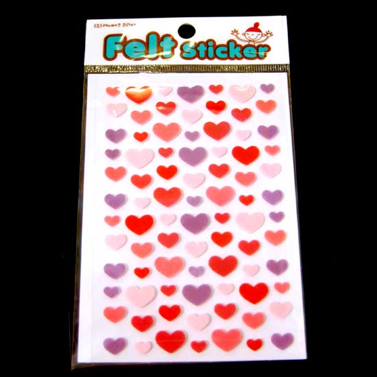 Displayed here is a sticker set in vibrant colors. The felt construction delivers a comfy touch. The heart-shaped design makes it stand above the rest.