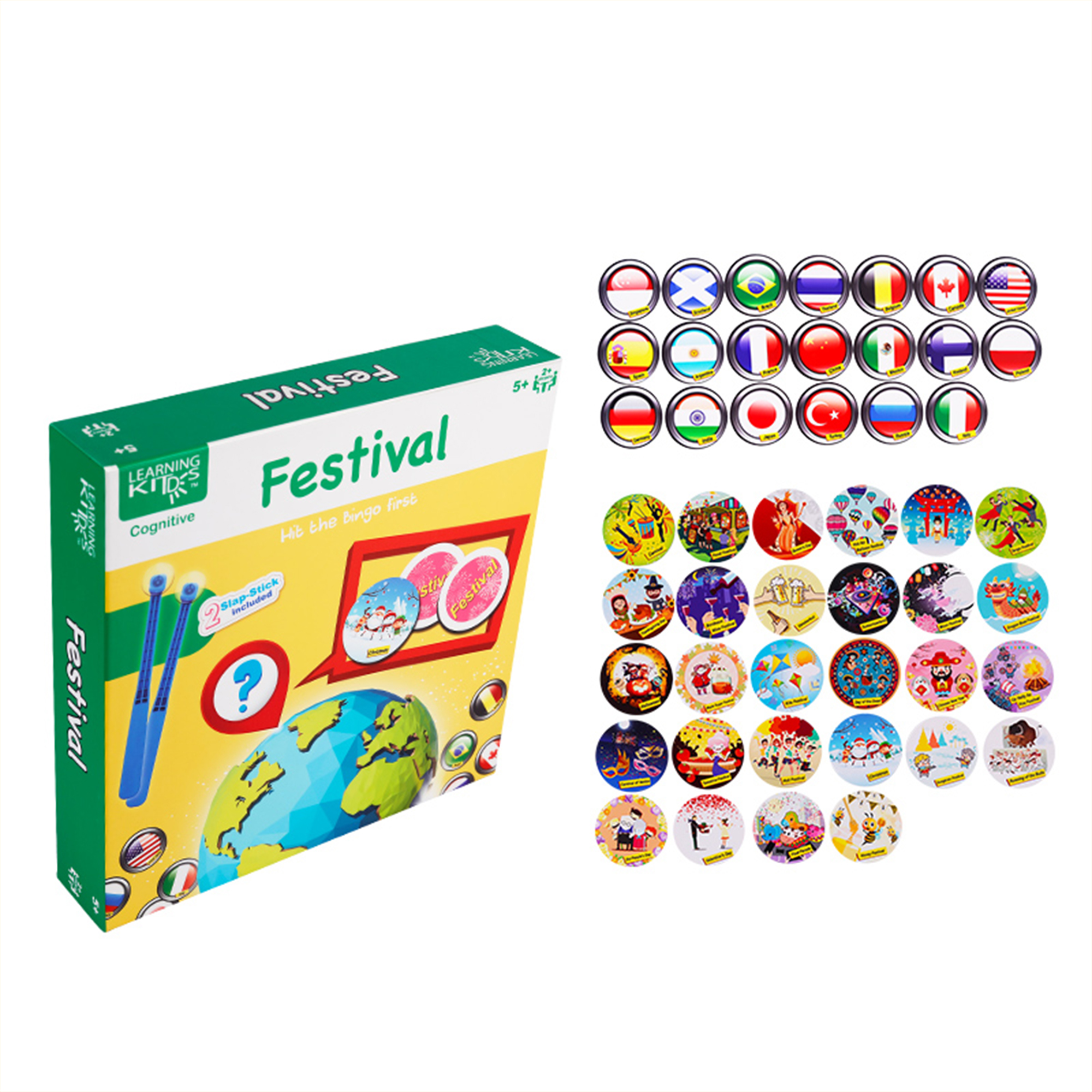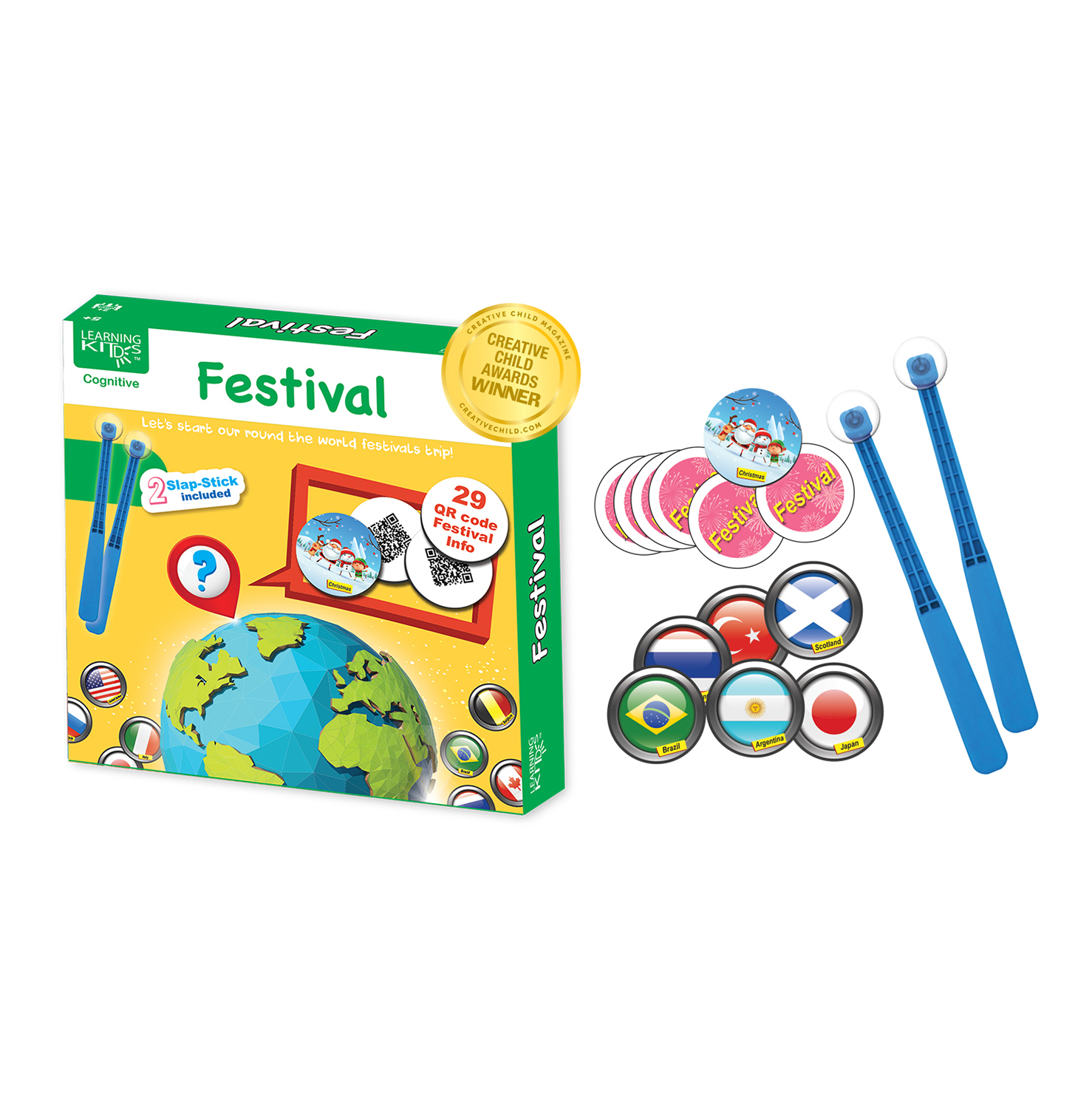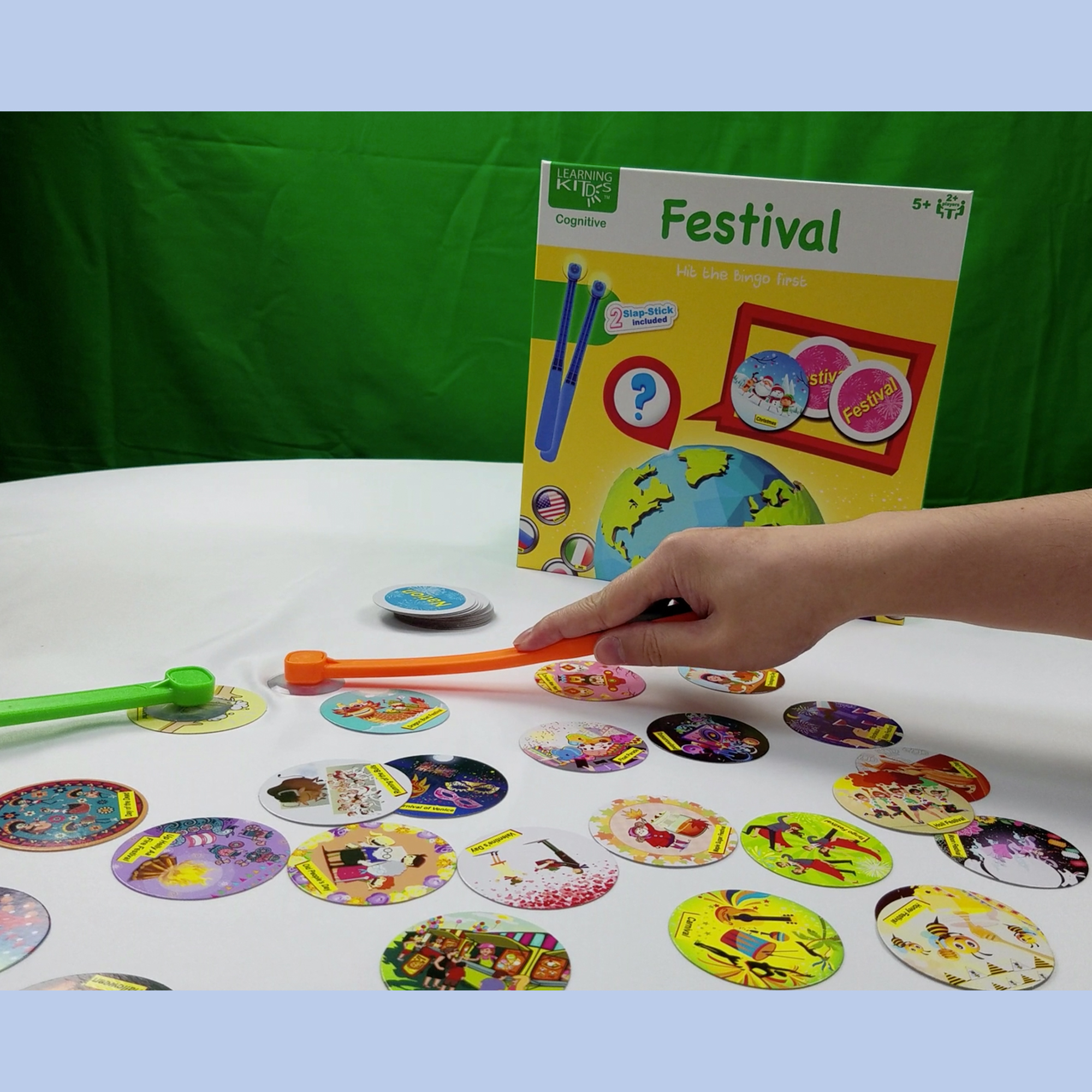 Let's start our round the world festival trip! Learning the origin and experience of different festivals. Use your slap-stick to pick up the festival cards as soon as you match the country card.