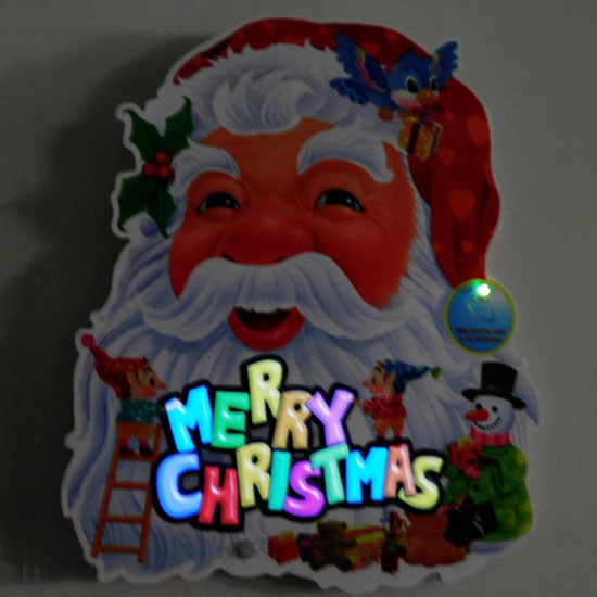 This festival light features a happy Santa Claus background in bright colors. It comes with the colorful lighted words "MERRY CHRISTMAS". Give your best wishes to your friends and family with this beautiful light.