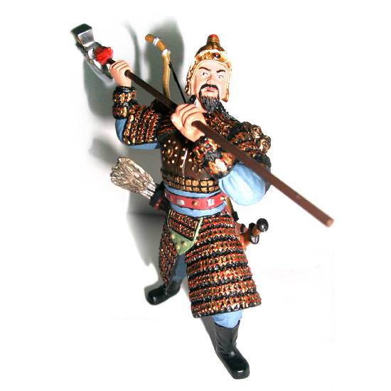 This is Chinese soldier figurine with weapon. The figuring is holding a spear and it is equipped with arrows and sword. An ideal collectible for different ages.