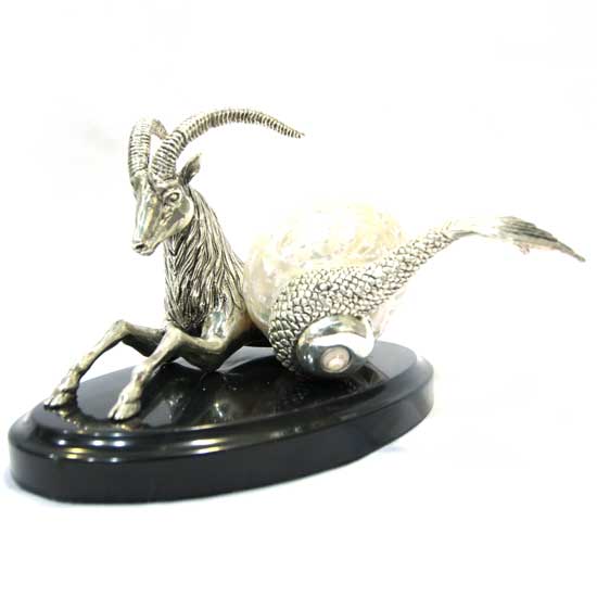 Photographed is a seashell decoration with a finely crafted look to present added attractiveness. This decoration is a mystic animal with the body of a stag and tail of a dragon for an artistic flavor. This brass decoration is a fashionable item to beautify modern living rooms.