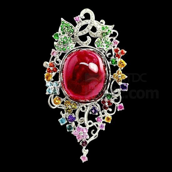 - Rubellite 20.13ct, colorful sapphire 3.721ct, diamond 0.352ct, 750KWG.