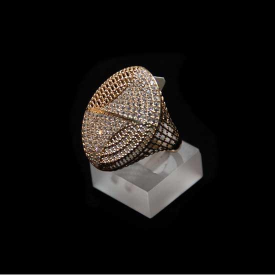 This finger ring is finely made of silver and boasts a simple net structure. It is fully interspersed with glistening CZ stones for a decorative touch. This stylish finger ring shimmers with a highly glossy finish.