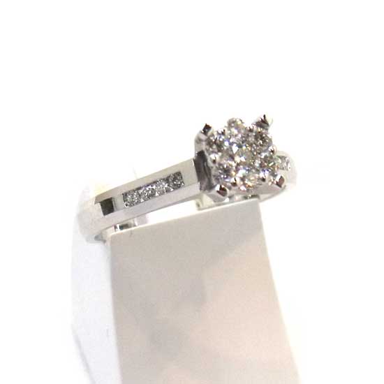 This pretty finger ring features a round, diamond-paved center. Crafted of platinum and 18K white gold, the ring band is studded with tiny diamonds for added sparkle. The gorgeous ring is a great addition to your jewelry collection.