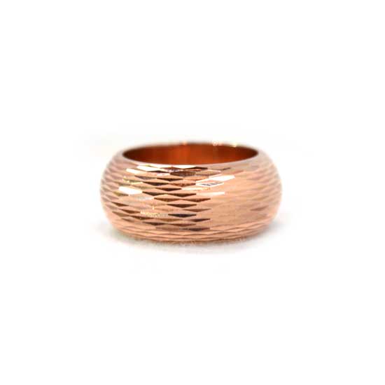 This is a rose gold finger ring with a fashionable design. It is finely made with great craftsmanship and delicate details for an attractive look. This stunning ring surely is a great item for adding some glamor to your slender finger.