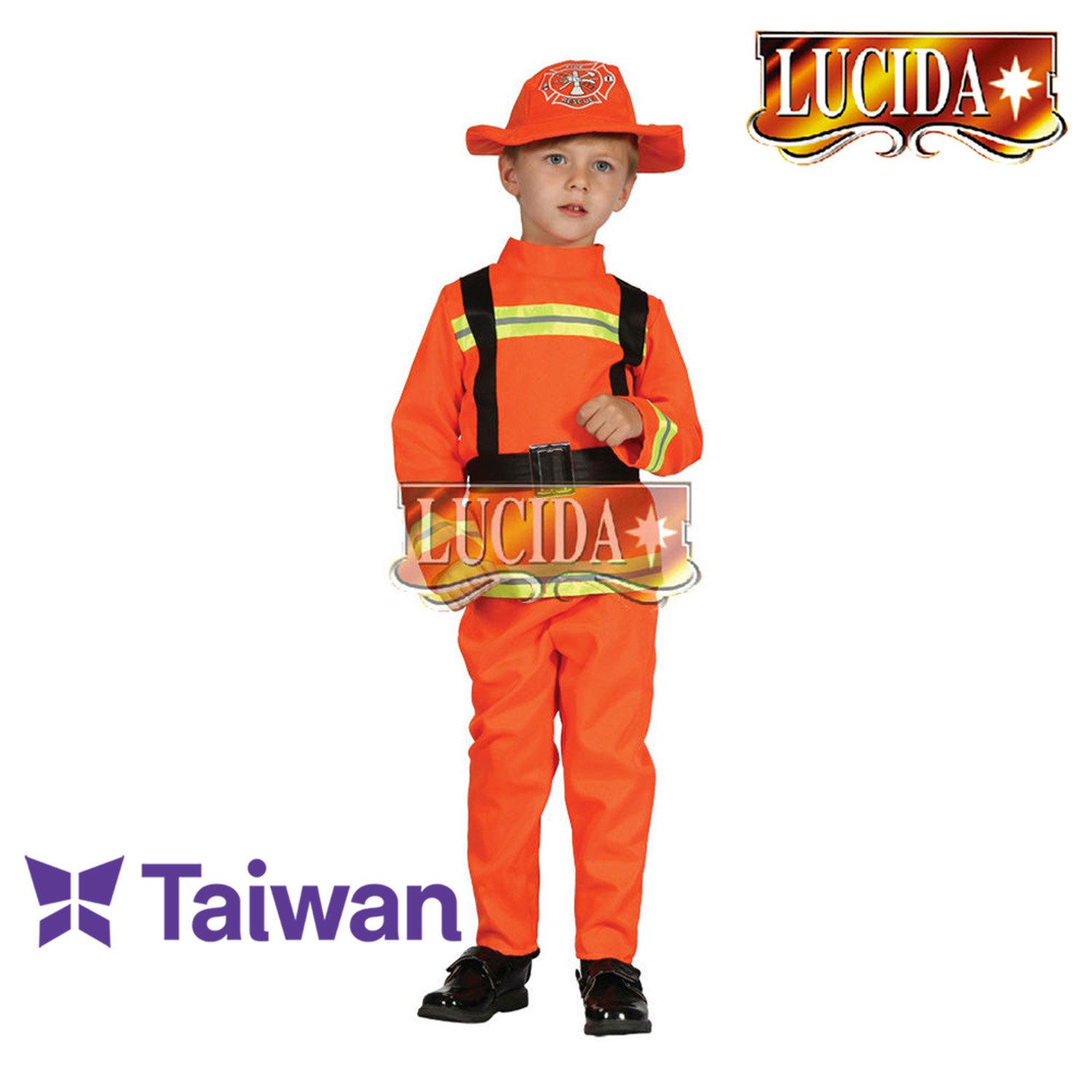 Let your kid play the role of big hero in this fireman package. This set comes with a hat, a belt, a shirt and a pair of pants. The detailed workmanship is revealed by reflective stripes on chest, cuffs and hem. It provides a good chance to educate your kids about fire prevention with a real-looking firefighter modeling.