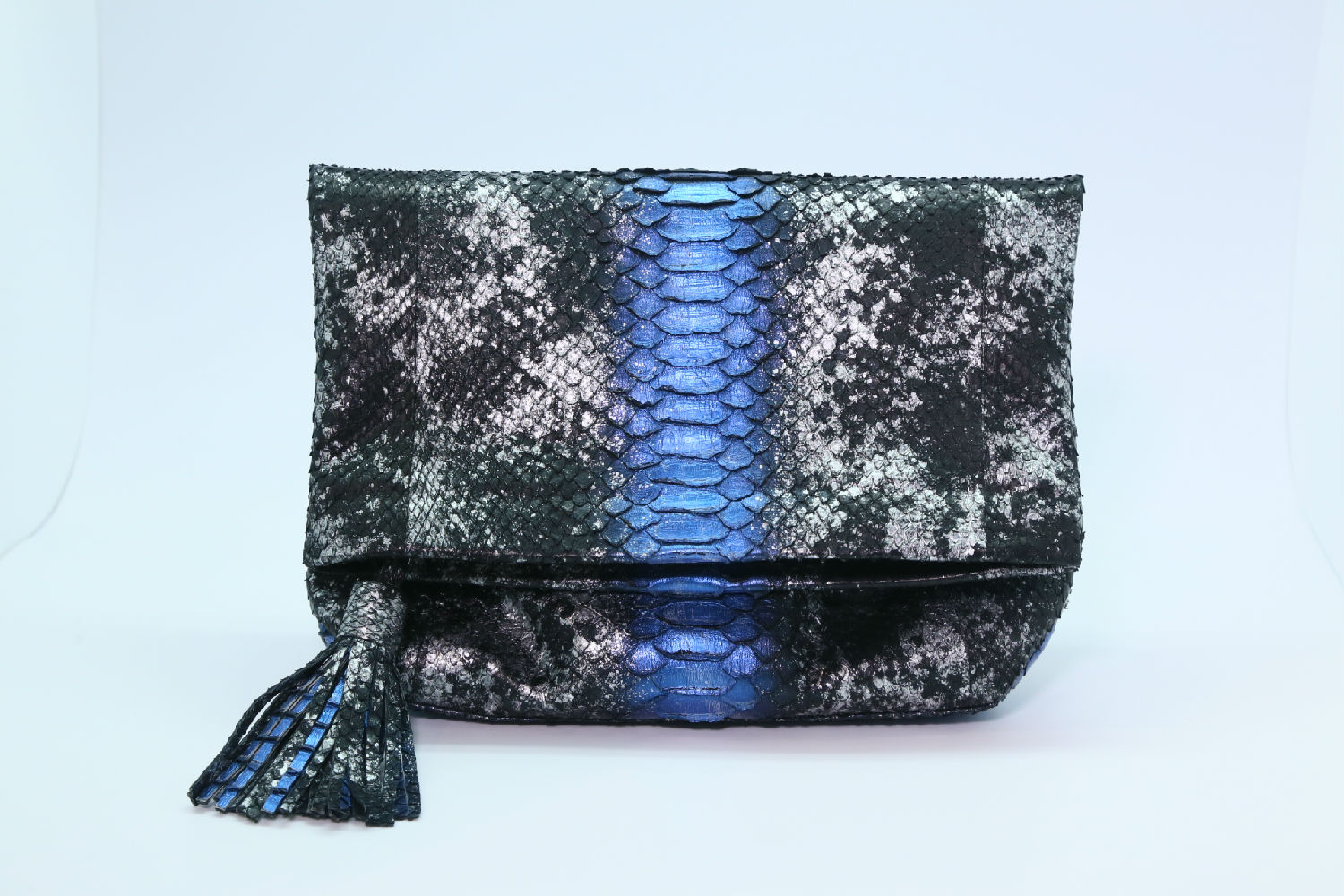 Handmade clutch in Python skin that can be used as a sling also. Can be requested in any color desirable.