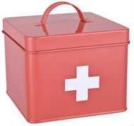 Metal first-aid box in red color.