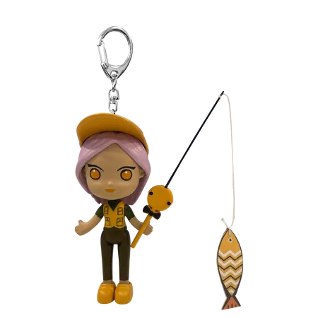 Fishing Enthusiast Keychain | PVC Figure with Rod, Metal Clip, Outdoor Bag Decor Bulk Sports Gift