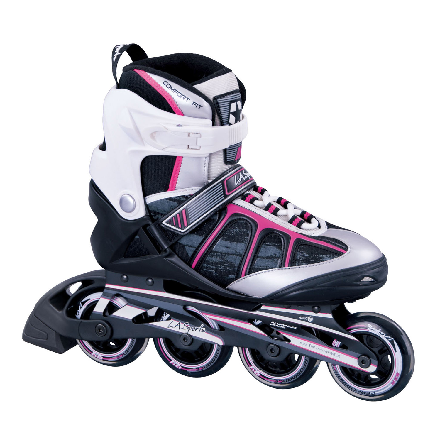 This pair of Fitness skates that offers ventilation, comfortable & durable padded liner, ergonomic shell provides additional side stability, easy-slip-in material & loop, quick-release and safety buckle