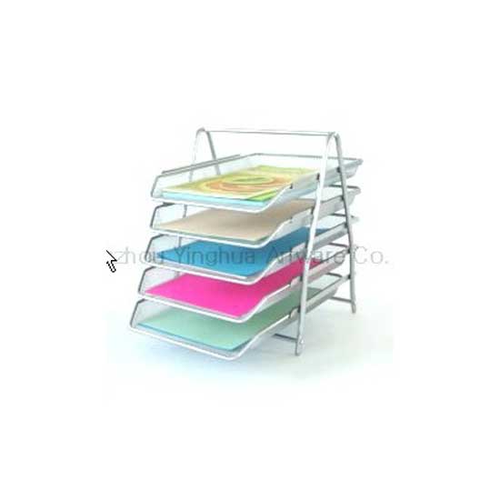 This five-tier file shelf comes with five trays with raised sides. It features a sturdy support in A-line style. The five layers allow organized storage. Work efficiently with this helpful shelf.