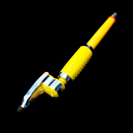The showcased pen offers a traditional writing mode and off-axis writing mode to satisfy different writing habits. The ingenious pen is equipped with an LED lamp to provide efficient light when the environment is not bright enough. The main holding part, which is made of extra-soft silicon gel, can relax the fingers when writing. The silicon gel cap can be used in all kinds of touch panel as a writing tool.